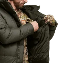 This is the warmest puffer jacket we make, built to be light and packable for the ounce-counting big-game hunter on their coldest hunts. Made with 800-fill PrimaLoft® Gold down blend, the insulation resists clumping in wet conditions maintaining warmth when you need it most. A 27D ripstop face fabric makes the HyperDown Jacket as tough as the conditions it is worn in, and it is cut to fit over your other layers and optics harness for rapid deployment.